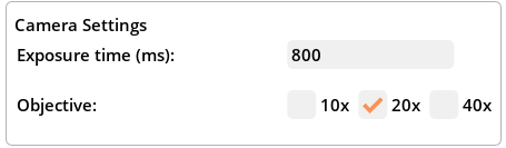 The Violet 3.0 system offers a flexible range of exposure times, spanning from 100µs to 2s, which can be adjusted within the “Acquisition” window, in the “Camera settings”. For optimal results, it’s recommended to set an exposure time of 800ms for QF-Pro® acquisitions. Users can utilize the live preview feature to assess image quality before capture, enabling adjustments as necessary to achieve the desired outcome.